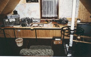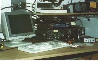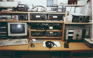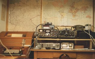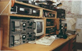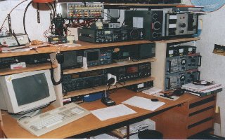Geloso 209 Fernschreibstation FT101 E FS 700 G II und ATV Station (70 cm) rechts das Antennenrohr mit LKW-Lenkrad und der Möglichkeit, mit der Hand die Antennengruppe um 400 Grad zu drehen. |