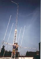 | 170 m Draht werden in die Quad - Antennenelemente eingefädelt. |